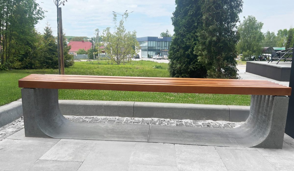 ЛАВКА БЕТОННА ЛБ-2 підвищеної міцності для благоустрою територій. Конструкція складається з двох бетонних L-стінок та сидіння з дерев`яних лав. Призначена для встановлення в парках, скверах, прибудинкових територіях та зонах відпочинку.