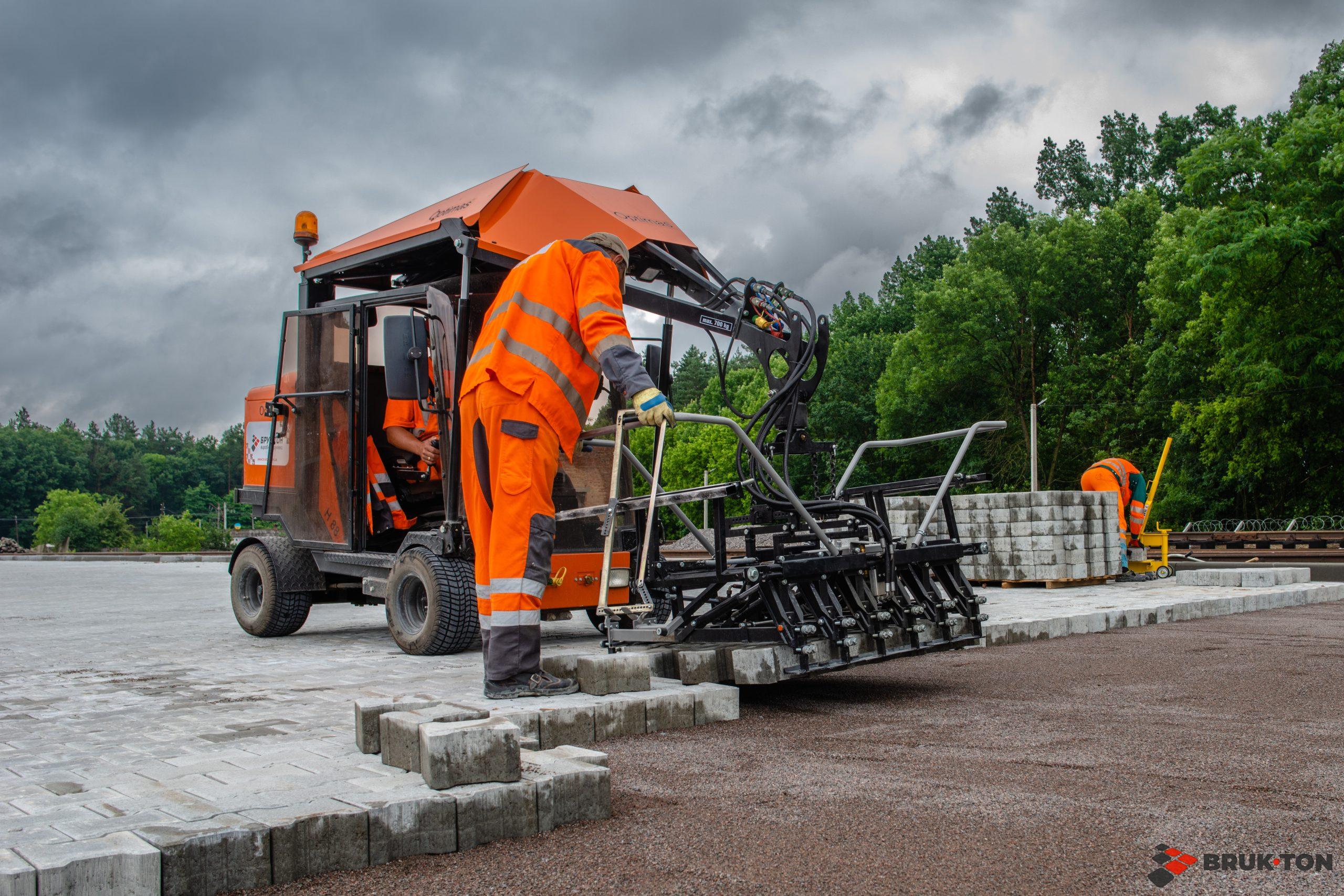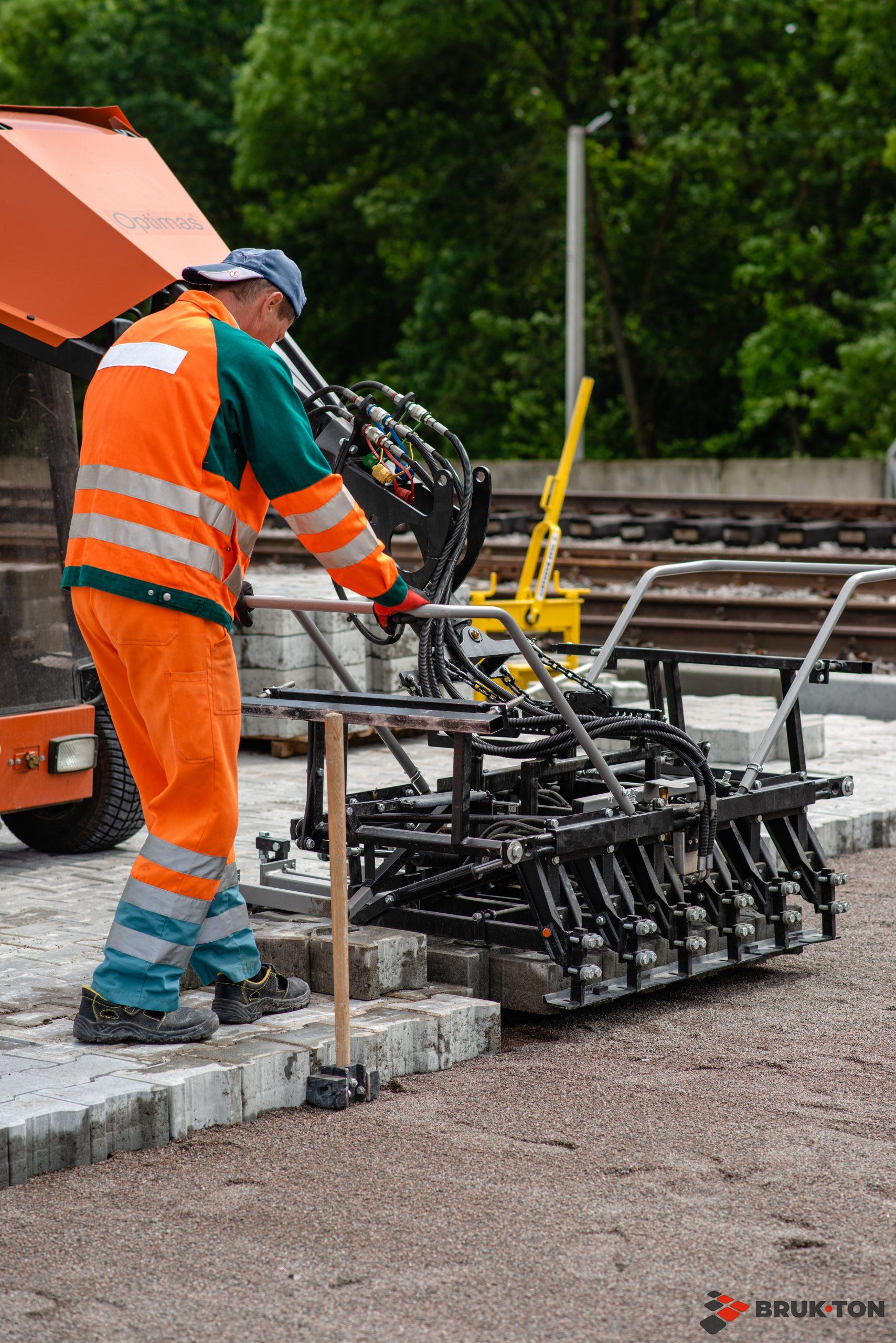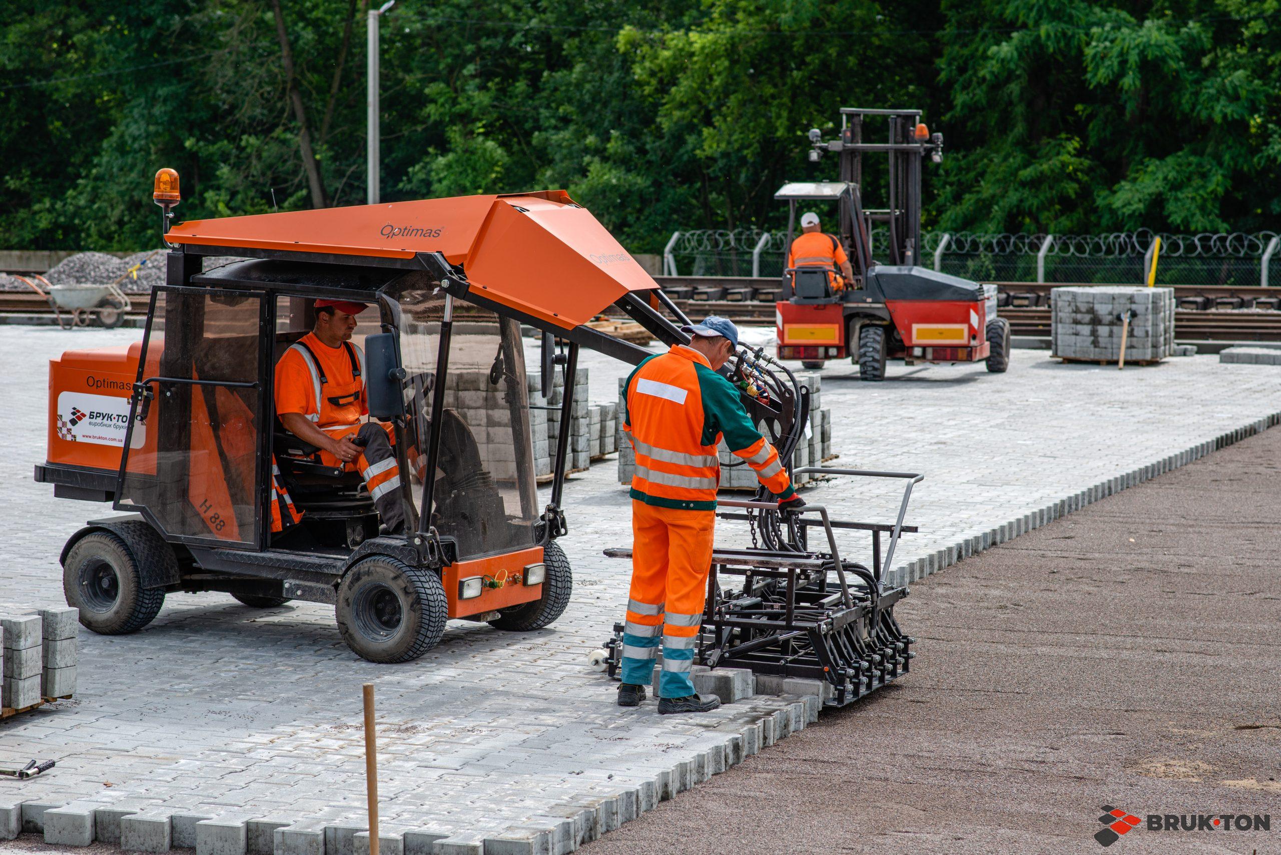 🤝Для механізованого вкладання бруківки ми використовуємо машини бренду Optimas, котрі за рахунок своєї потужності та простоти в керуванні дозволяють вкладати 800 і більше квадратних метрів тротуарної бруківки за одну зміну. Ці машини дуже ефективні на великих ділянках, таких як територія виробництв або складів, логістичні центри, порти, місця для паркування автомобілів, громадські площі тощо.
