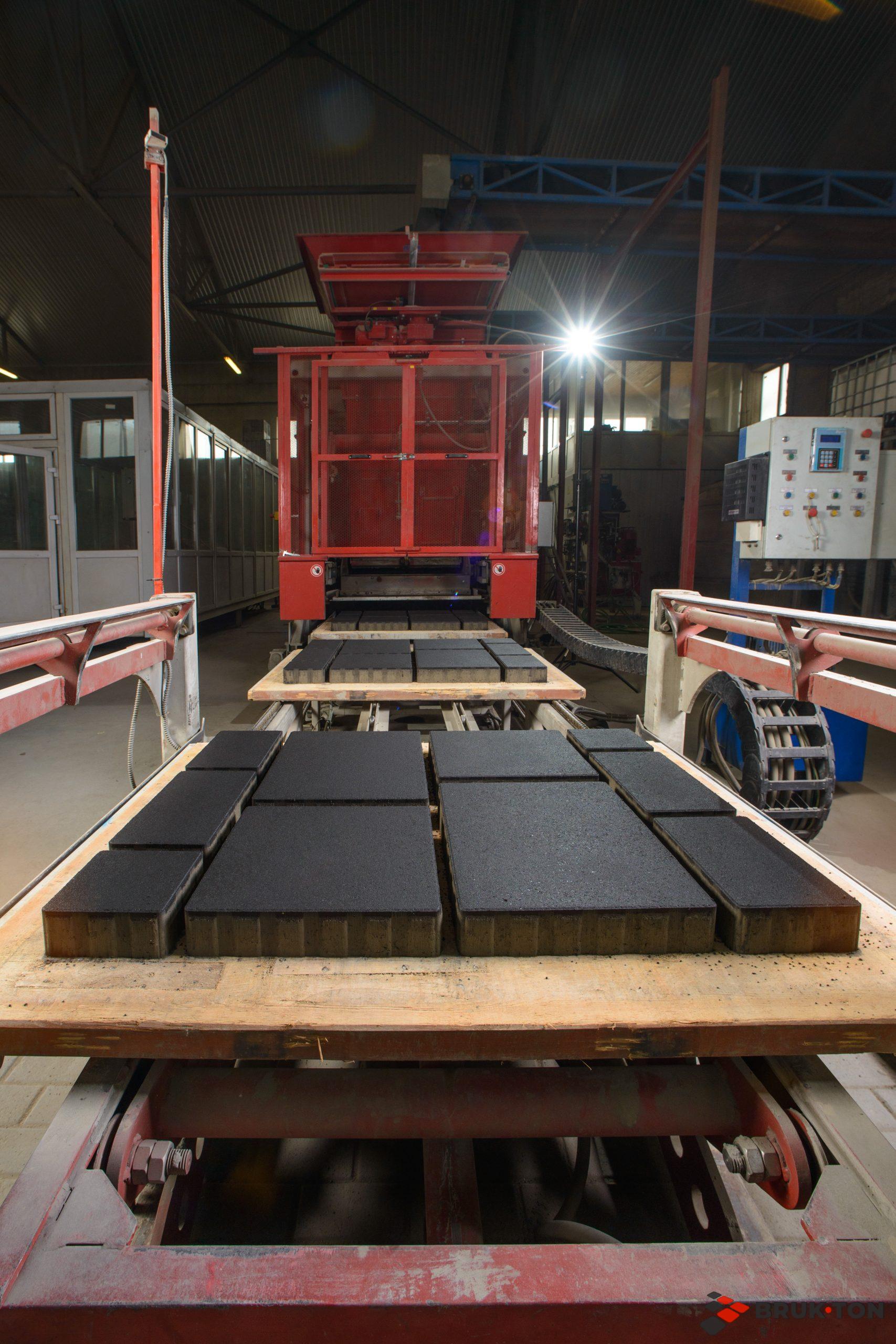 Суміш потрапляє у прес, де під потужним тиском формується міцна, щільна бруківка з ідеальною геометрією. Далі вироби висихають у камерах дозрівання, набираючи міцності. Кожна партія проходить контроль якості, перш ніж потрапити до вас.