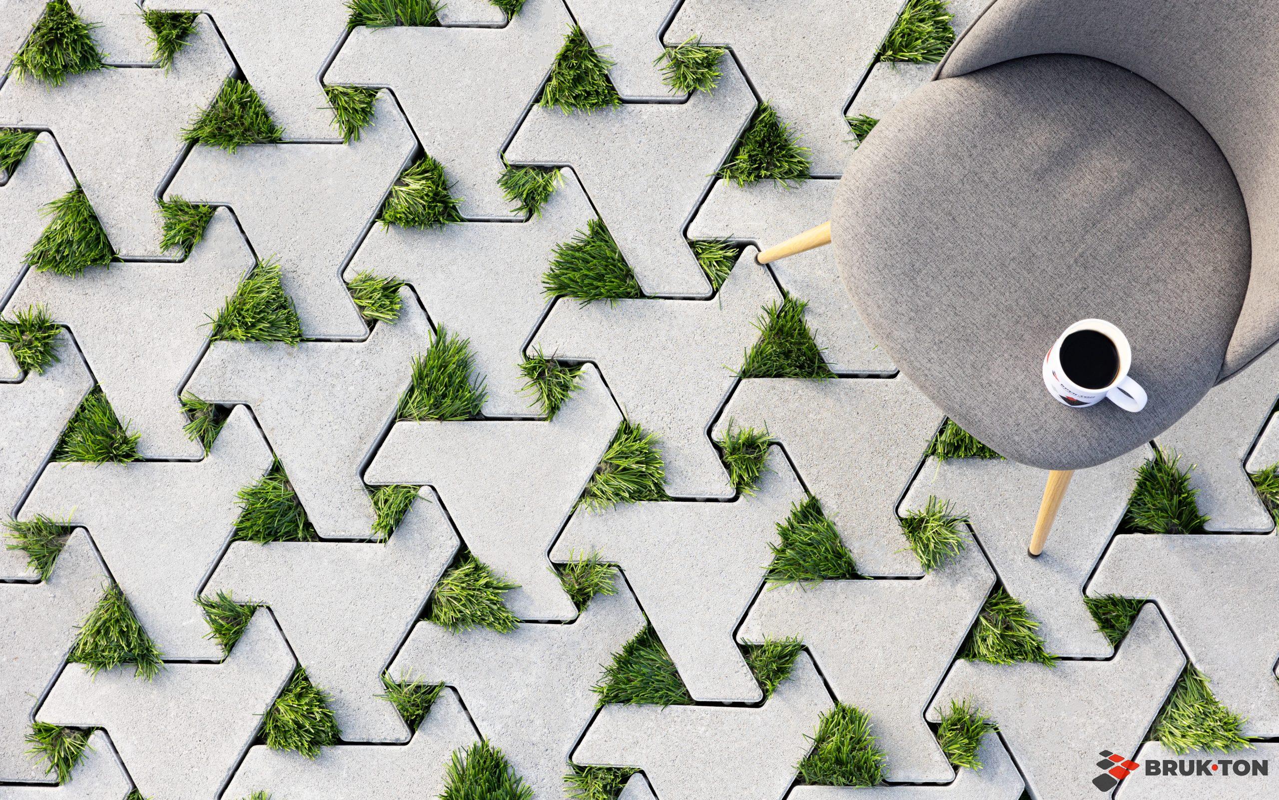 Бруківка «Бумеранг», котра дозволяє варіювати ступінь озеленення території. Товщина бруківки – 8 см, а це означає, що вона може застосовуватися у місцях з підвищеною інтенсивністю руху та навантаженням на поверхню.